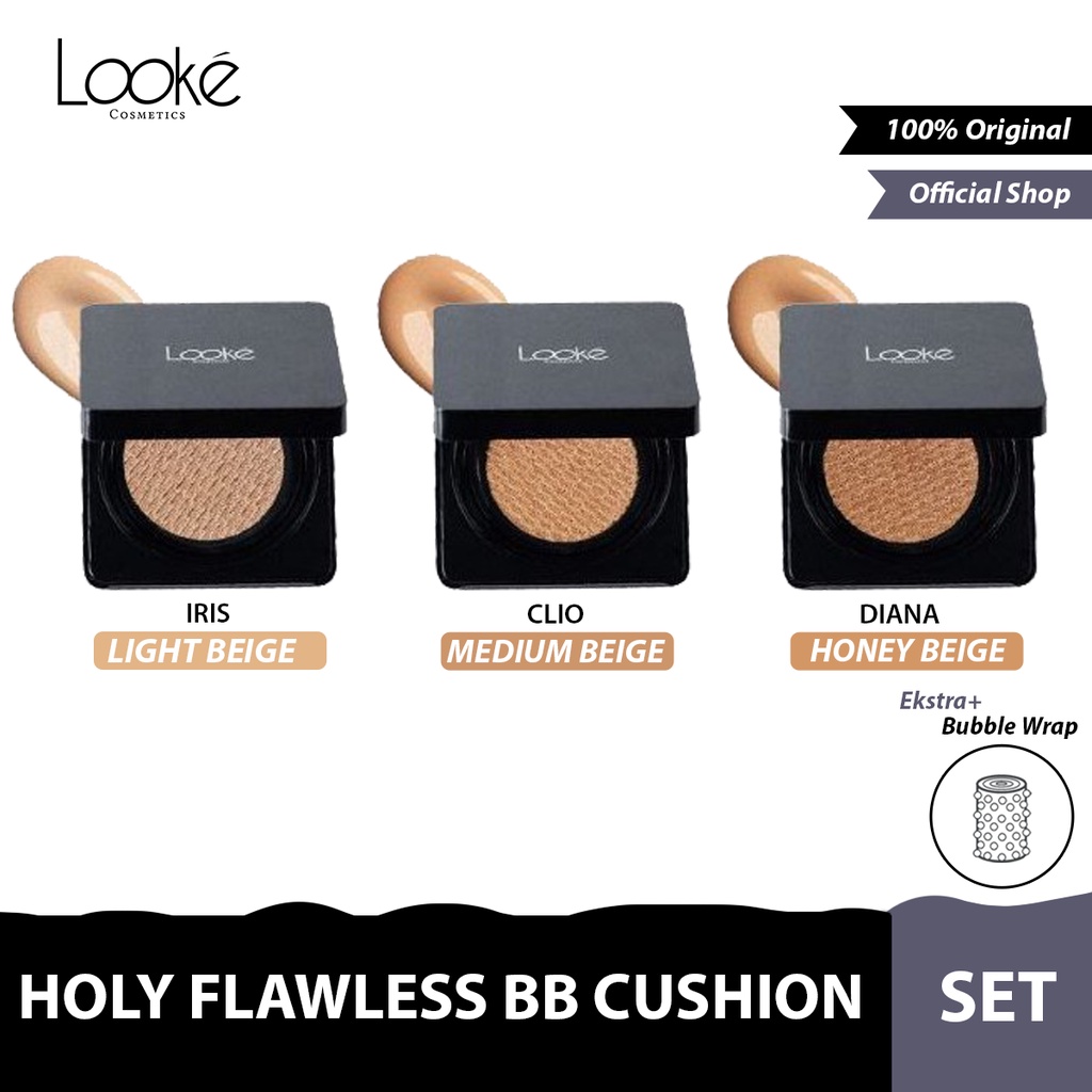 - LOOKE BB Cushion Holy Flawless Series (Iris - Clio - Diana) / BB Cushion Ringan Tahan Lama