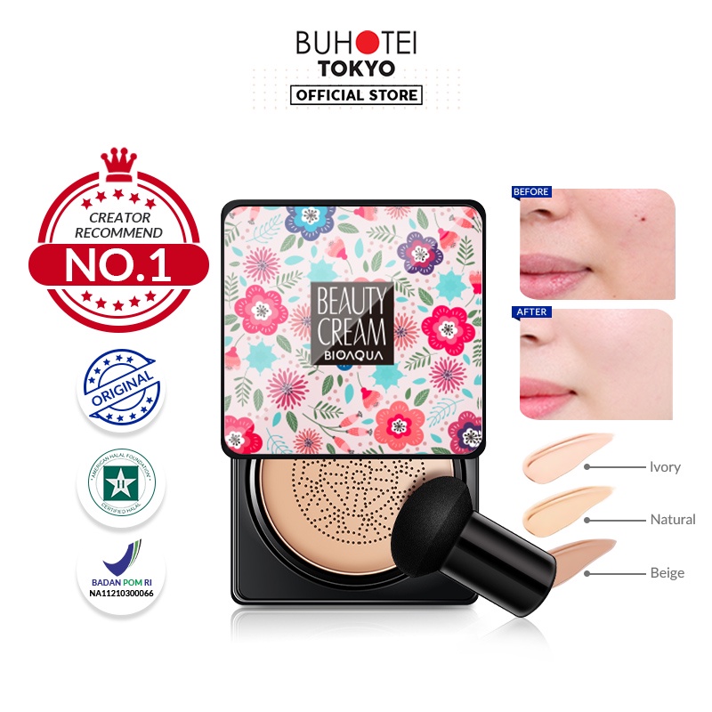 - BUHOTEI BIOAQUA BB Cushion Beauty Cream Matte High Coverage Waterproof Tahan Lama Air Mushroom Cushion Poreless 100% Original BPOM HALAL